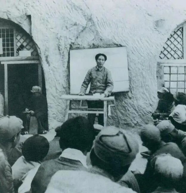 1938年4月,毛泽东在鲁迅艺术学院讲演。